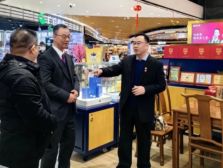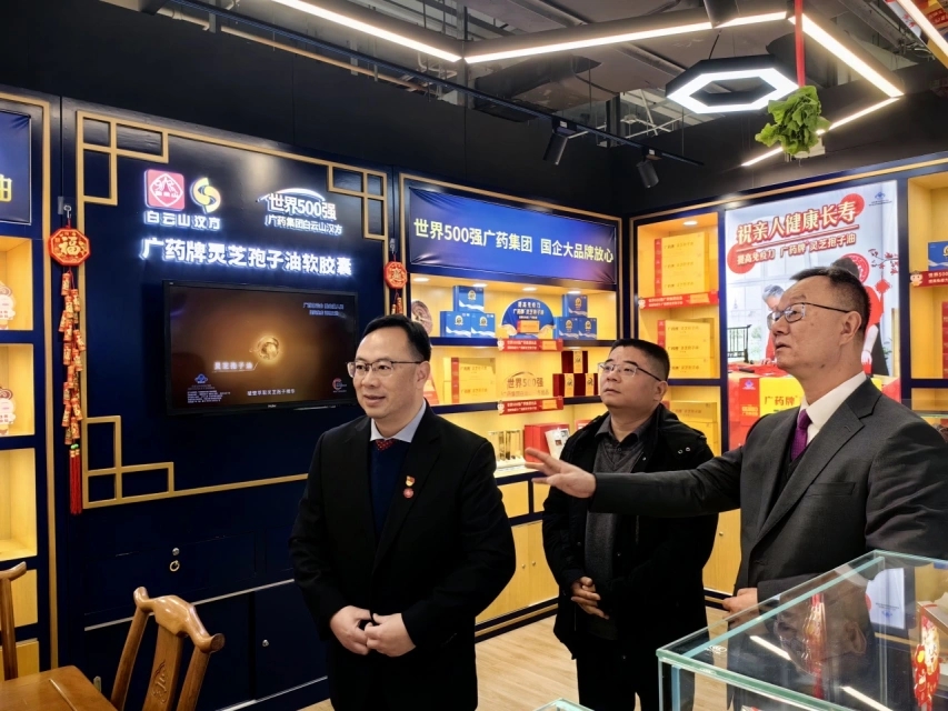 党总支书记董事长、袁诚,纪检机构负责人韦兴一行来到孢子油广百中怡直营店、北京路陈李济国医馆慰问坚守岗位职工,袁书记在与工作人员的亲切交流中详细了解门店的经营、客流及业务进展情况,对2023年门店取得的销售成绩给予充分肯定并给出了指导性建议。鼓励门店人员要保持服务意识,提升宣传品质,为顾客提供更好的服务,全力以赴完成年度经营目标上台阶。