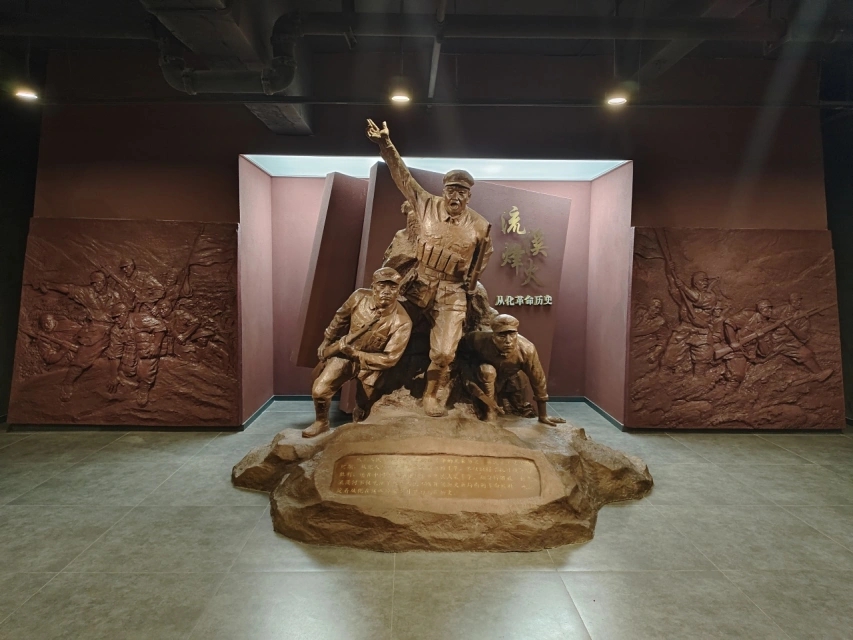 进入展馆,目光所及之处便是一座雕像。这座雕像充分体现了先烈在那段艰苦岁月中奋力拼搏的精气神。