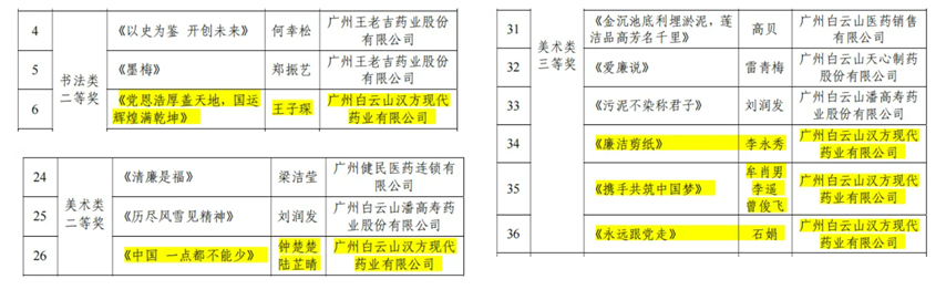 图 广药集团“廉洁文化书画摄影比赛”获奖名单(汉方公司)