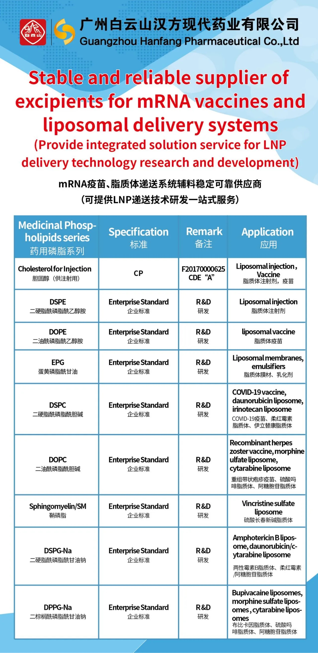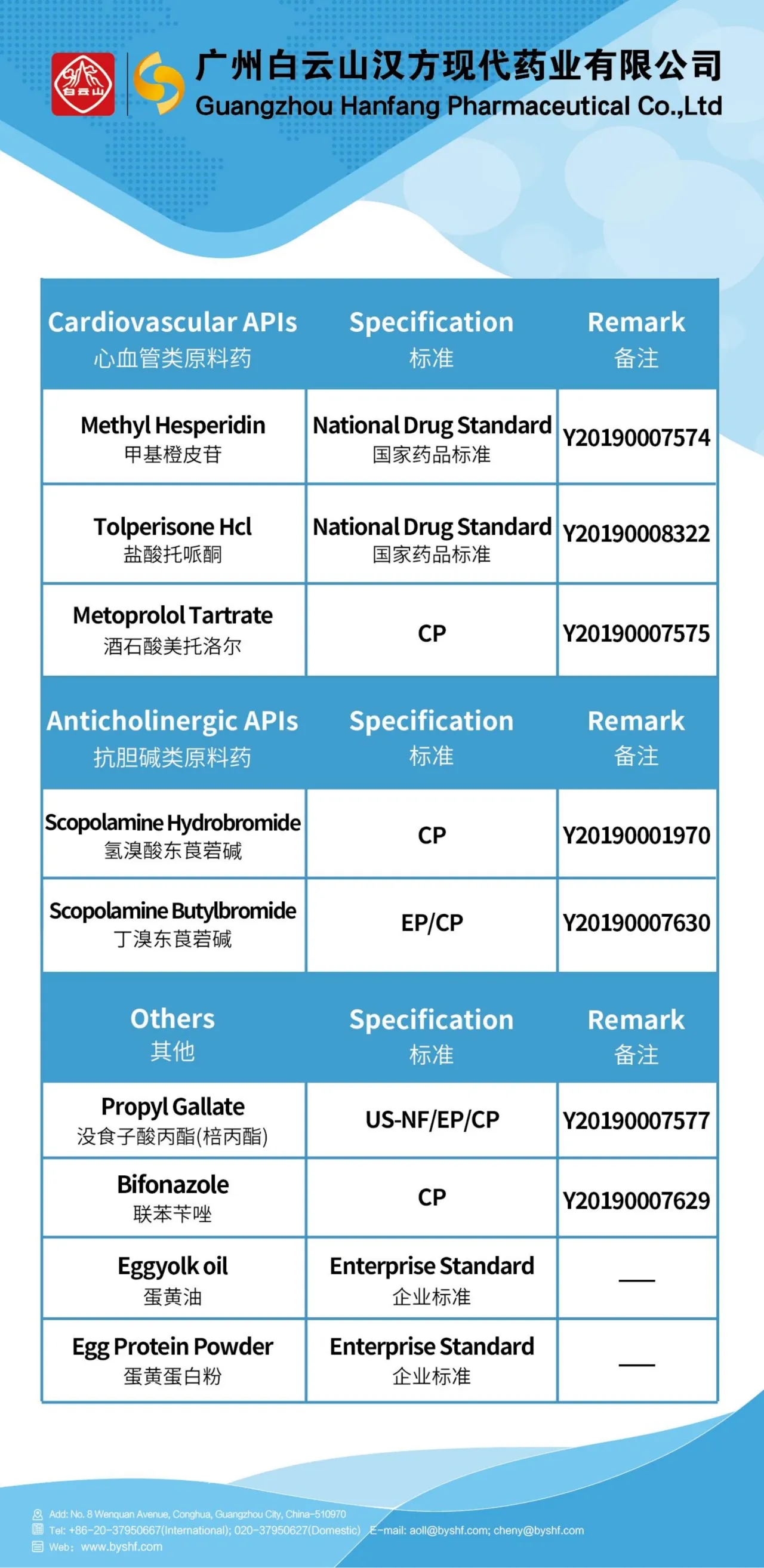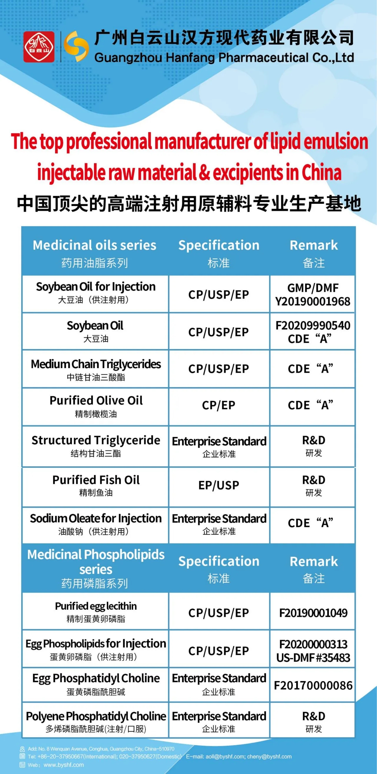作为国际领先的长春碱类抗肿瘤原料药供应商、药用脂质原辅料生产基地,白云山汉方是专业从事抗肿瘤等特色原料药,药用脂质原辅料(磷脂、油脂、甾醇等)研发、生产、销售于一体的高新技术企业。依靠国家工程研究中心强大的科研实力,白云山汉方拥有国内唯一的省级药用脂质重点实验室,始终坚持"创新、务实、专业、责任"的核心价值观,发挥国企大品牌的担当,为国内外客户提供质量可靠、供应稳定的高端原辅料,努力成为国际领先的健康营养品及原辅料供应商。