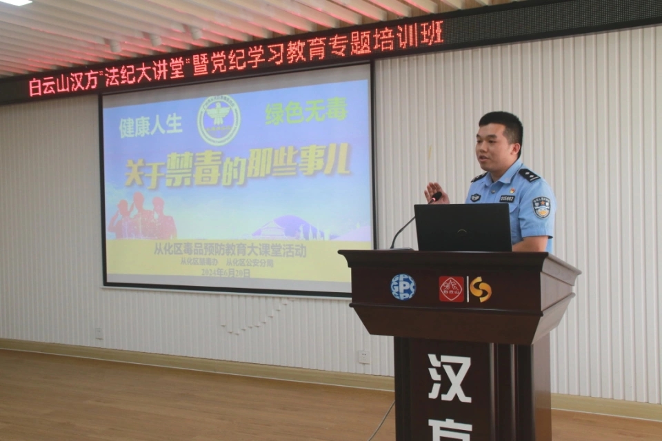 在第37个“国际禁毒日”来临之际,广州市公安局从化区分局禁毒大队民警庾学弘为大家带来禁毒专题课堂,通过面对面讲授毒品的类型,毒品的危害与预防,号召大家要深刻领会毒品对社会、家庭的危害,以及违纪违法的"健康成本、家庭成本、经济成本、自由成本",切实增强大家防范毒品的意识与能力。通过观看系列视频,大家近距离感受全民参与禁毒的意义和责任。