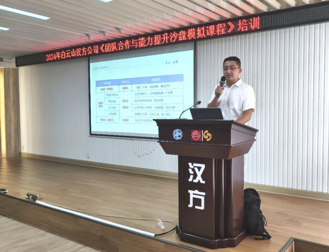 为提升青年骨干团队协作能力,白云山汉方于2024年9月18日组织青备班学员进行《团队协作与能力提升沙盘模拟课程》培训,邀请了沙盘应用专家杨爱新老师来授课,共有93名学员参加了此次培训。
