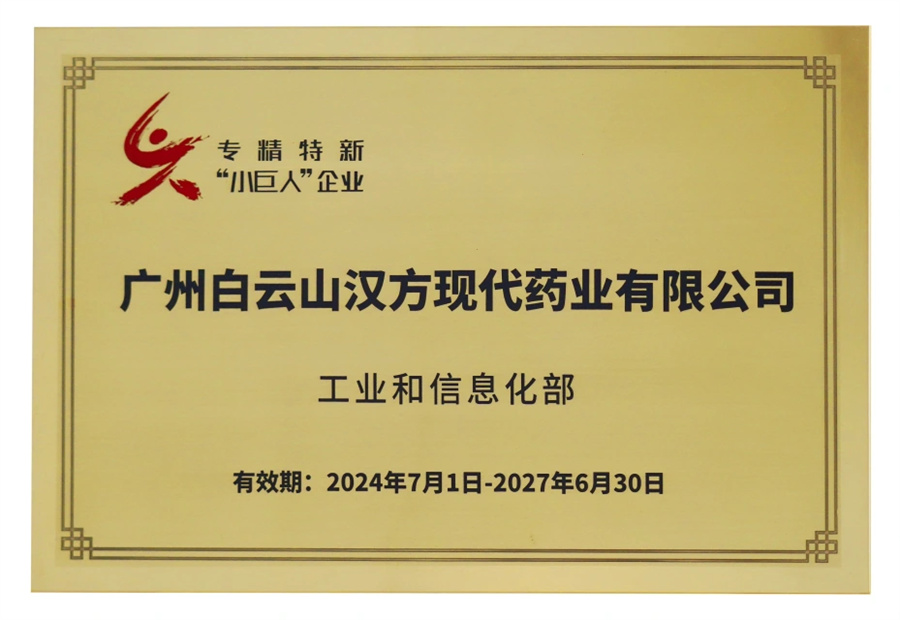 专精特新“小巨人”企业是国家制造业企业的排头兵,是国家“补短板”、“锻长板”、“填空白”的重要抓手,是推进新型工业化、建设现代化产业体系、发展新质生产力的有力支撑。继入围“科改企业”、荣获“全国五一劳动奖状”后,白云山汉方又入选专精特新“小巨人”企业,这是对白云山汉方积极培育新质生产力,以科技创新动能推动高质量发展的充分肯定。