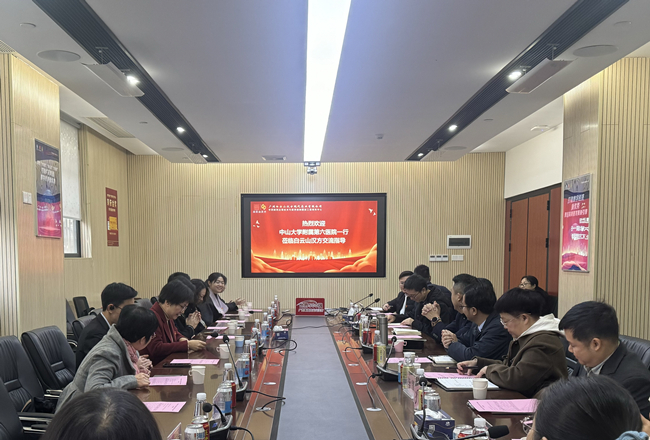 12月30日,中山大学附属第六医院党委副书记李文敏,药学部党支部书记、主任黎小妍,外科第四党支部书记、胃外科主任练磊一行到白云山汉方公司考察调研,白云山汉方公司党委副书记、总经理韩亚明,副总经理许文东,营销中心副总经理刘旻等领导及相关人员参加了调研会议。
