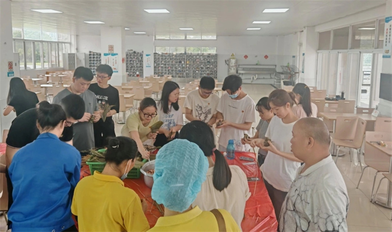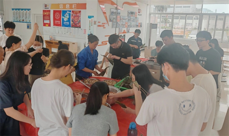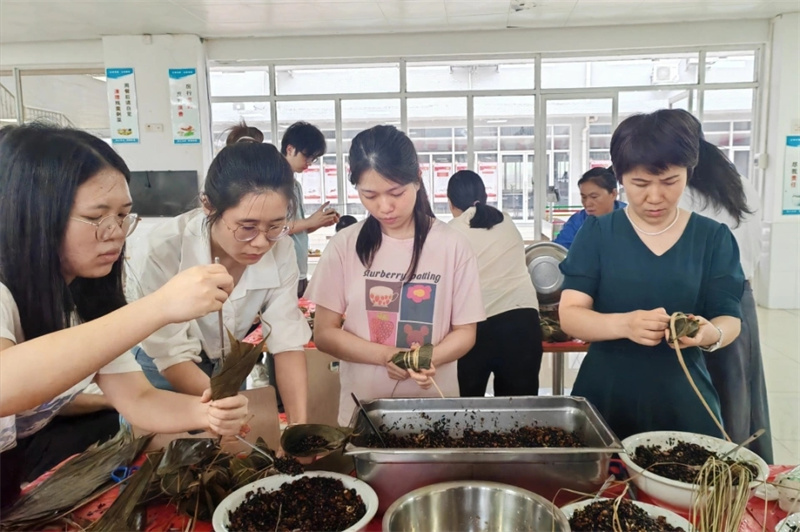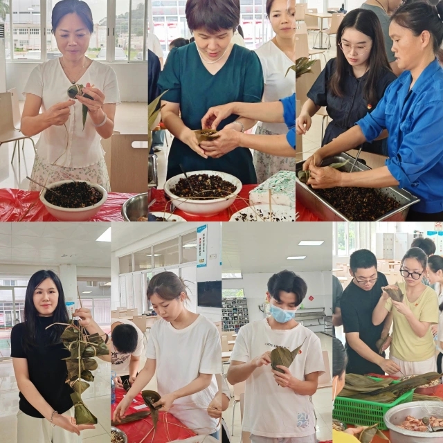活动特邀后勤师傅现场教学,从选叶、填料到捆扎,详细讲解了包粽子的传统技艺。