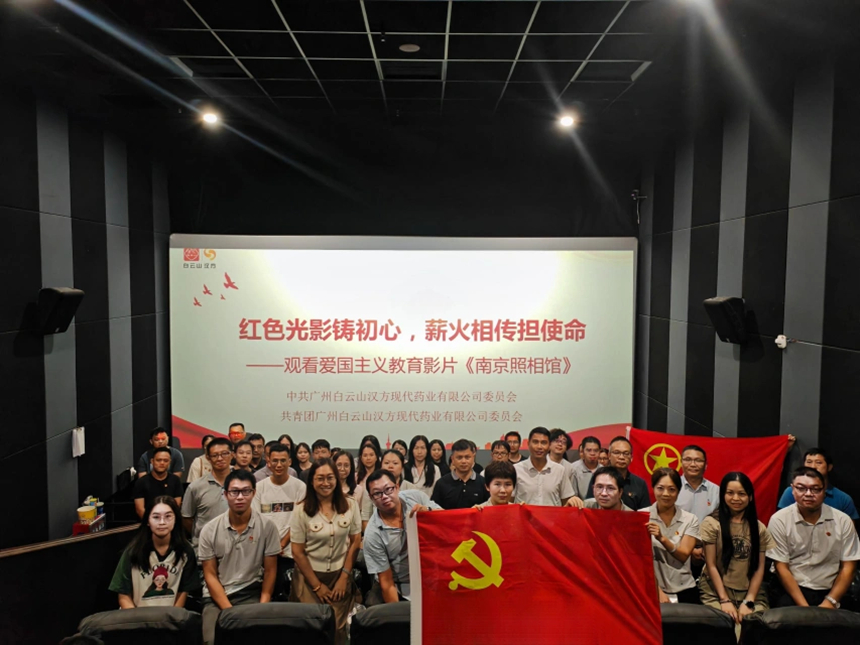 为深入学习贯彻习近平新时代中国特色社会主义思想,激发党员干部爱国情怀与使命担当,8月底,白云山汉方党委组织开展“红色光影铸初心,薪火相传担使命”主题教育活动,集中观看爱国主义题材电影《南京照相馆》,公司党委领导班子、党员干部、团员青年共80余人参加活动。