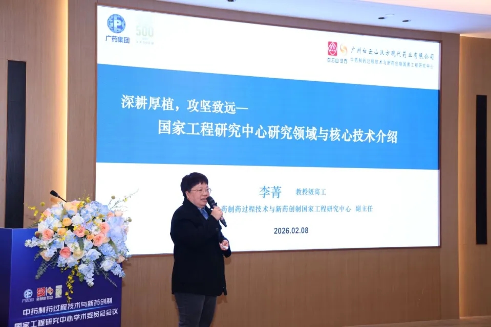 2026年2月,中药制药过程技术与新药创制国家工程研究中心(以下简称“国家工程研究中心”)2026年度学术委员会会议在广州从化隆重召开。中国科学院上海药物研究所岳建民院士等学术委员会成员,广州医药集团有限公司副总经理彭伟,国家工程研究中心主任、原广药集团副总经理、总工程师刘菊妍,国家工程研究中心常务副主任、白云山汉方公司党委书记、董事长袁诚等国家工程研究中心领导及科技骨干参会。