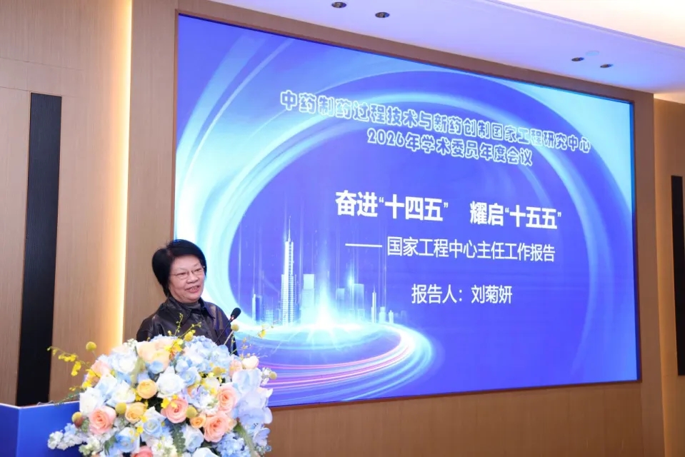 国家工程研究中心主任刘菊妍作工作报告,回顾了国家工程研究中心的初心使命和发展历程,总结了“十四五”期间在先进提取分离技术、中药成分规模化高效分离与制备技术、高端药用脂质原辅料等三大方向取得的突出成果,并提出了数字化转型、十大重点工程等“十五五”发展重点。